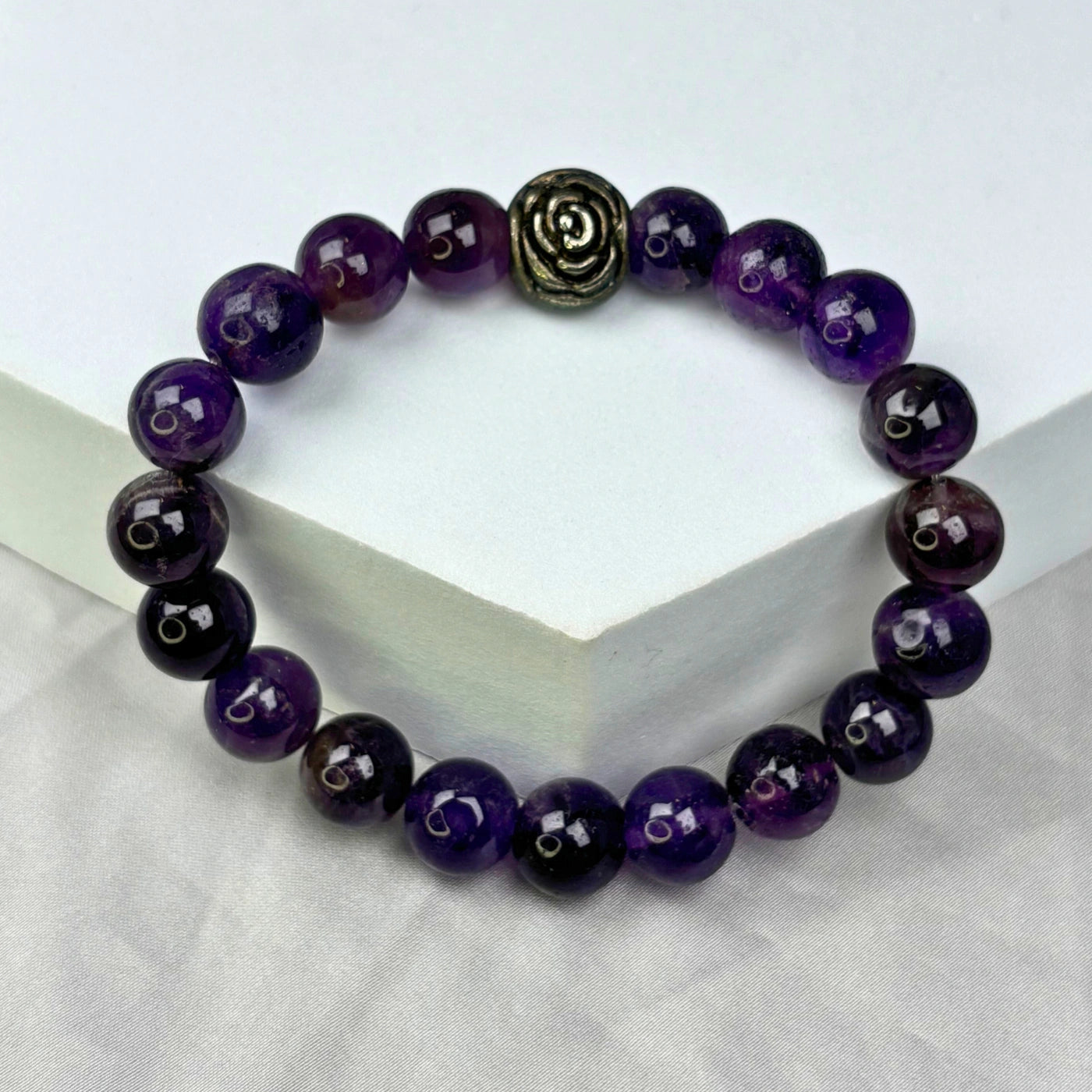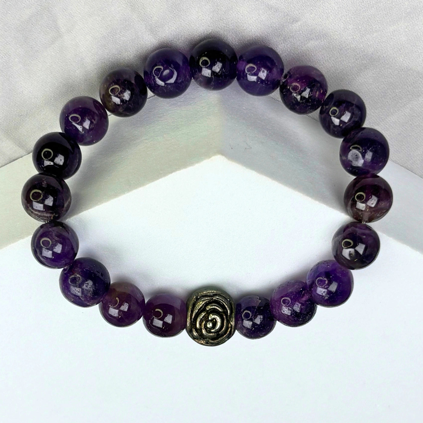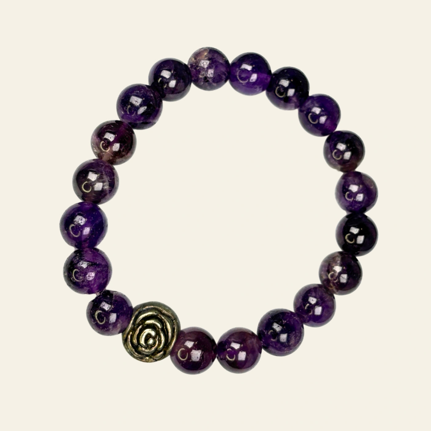 Purple+beaded+bracelet+gold+rose+charm+protector+women+elastc+annutra