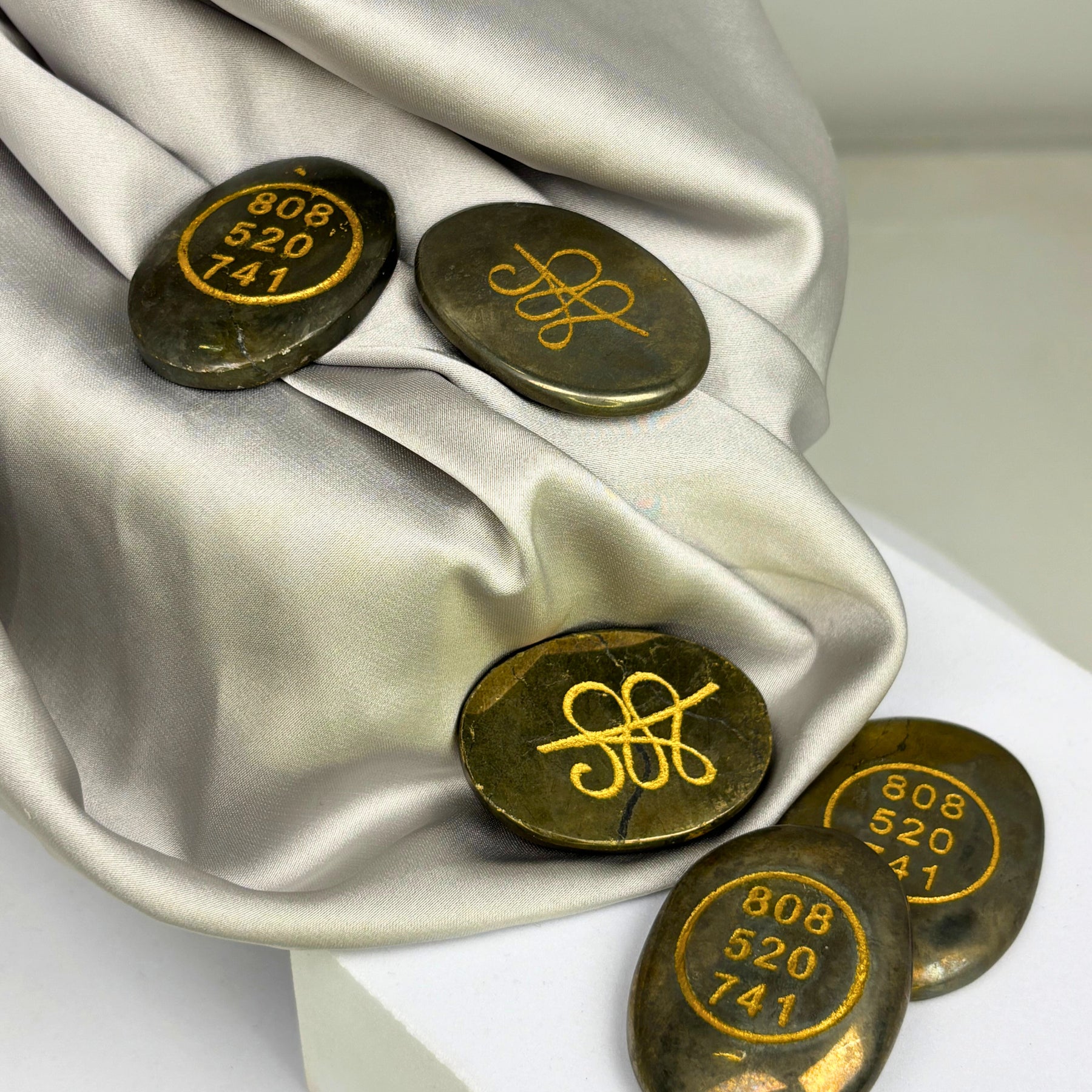 Radiating the golden energy of abundance, Golden Manifest is crafted from natural Pyrite — the “Stone of Prosperity.” Each piece is engraved with sacred Zibu symbols and angelic numerals, amplifying intentions of wealth, confidence, and financial success. Keep it in your workspace, wallet, or sacred corner to attract opportunities and manifest growth.