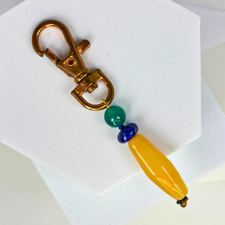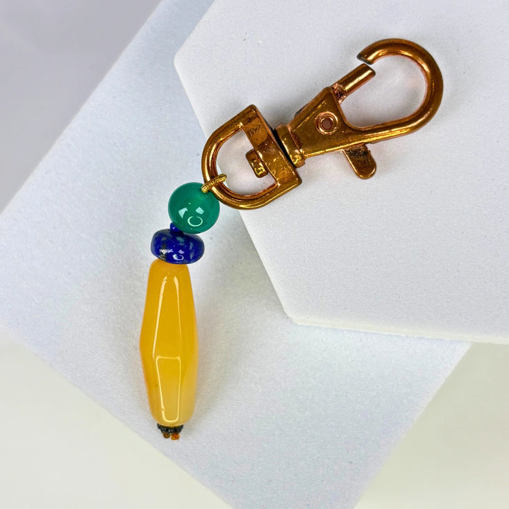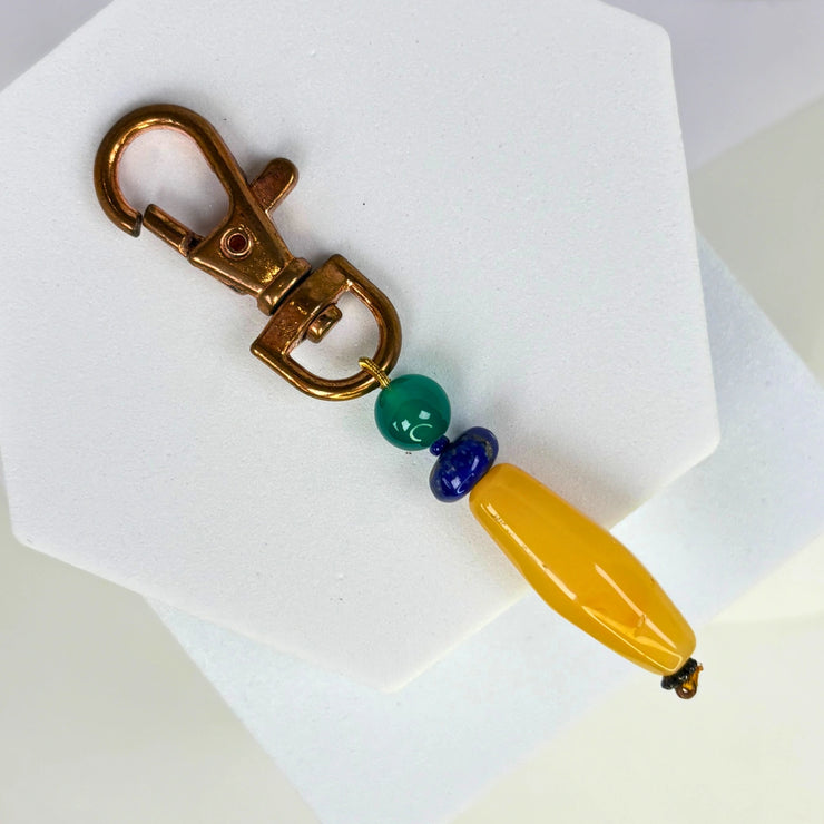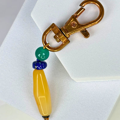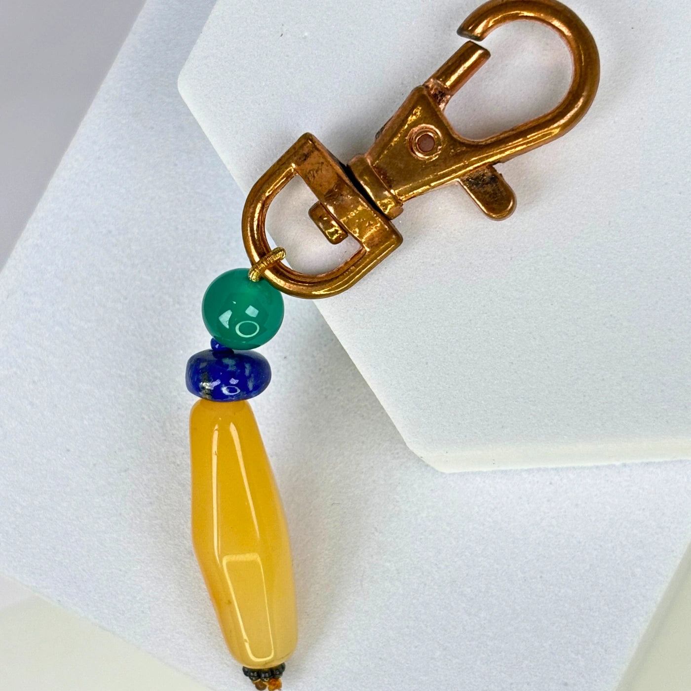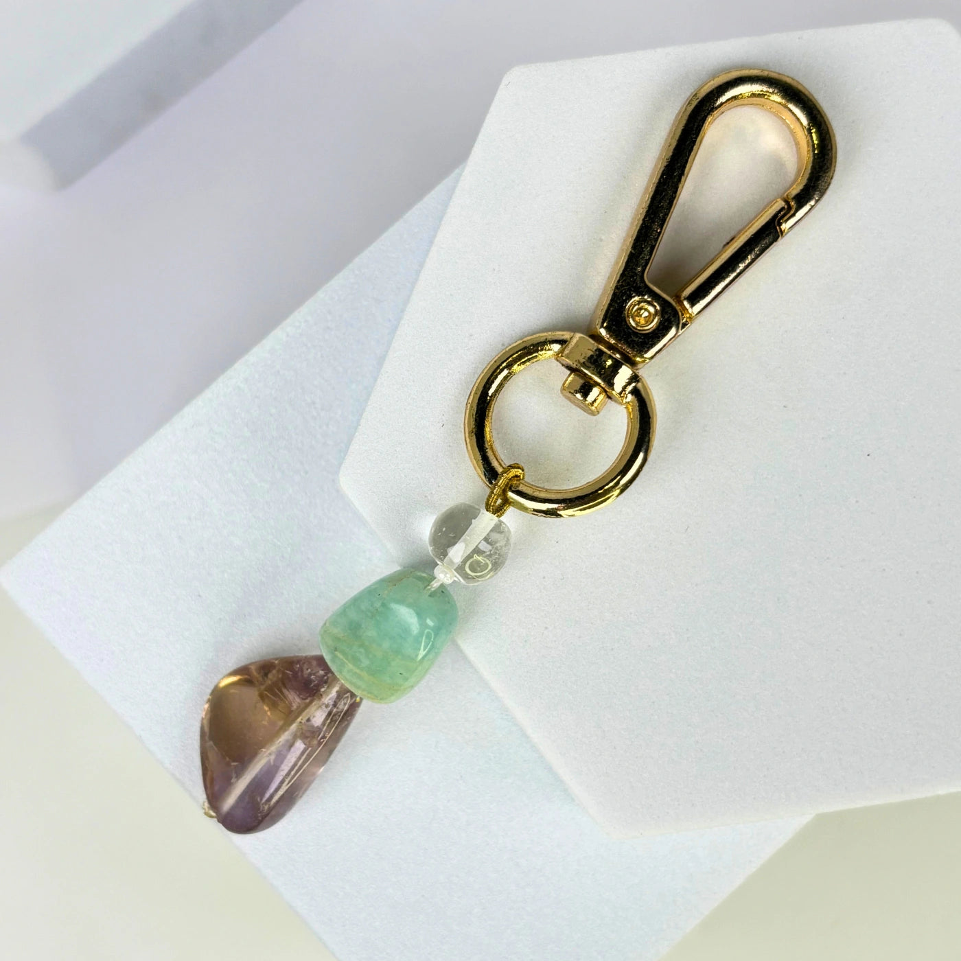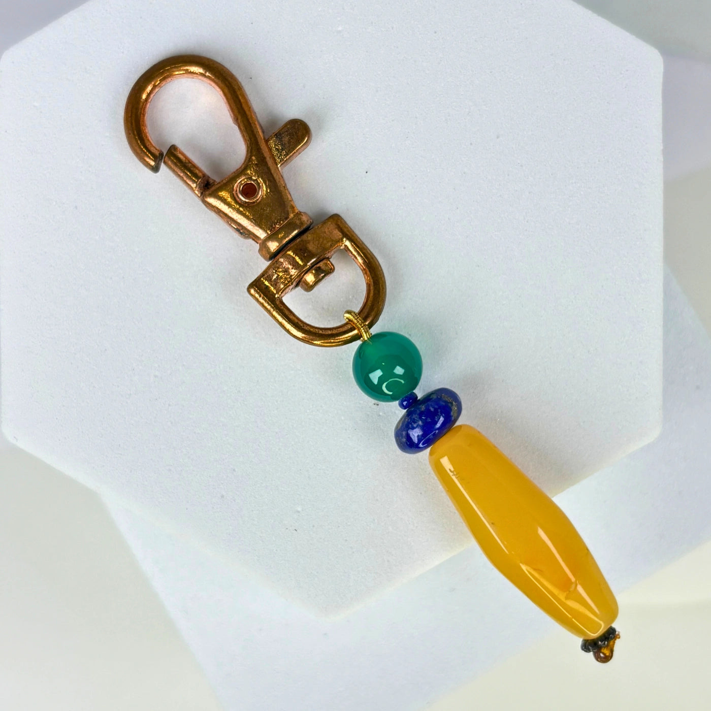 Sunlit Current features a natural amazonite donut pendant, known for its calming, heart-opening energy and soft, water-like patterns. It is paired with jade, a stone of harmony and prosperity, and finished with a clear quartz bead — a universal amplifier that enhances clarity and intention.
