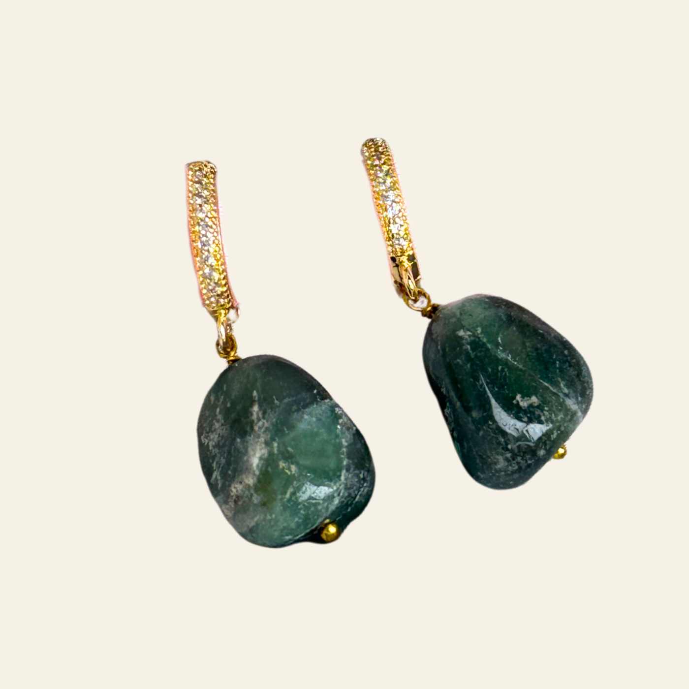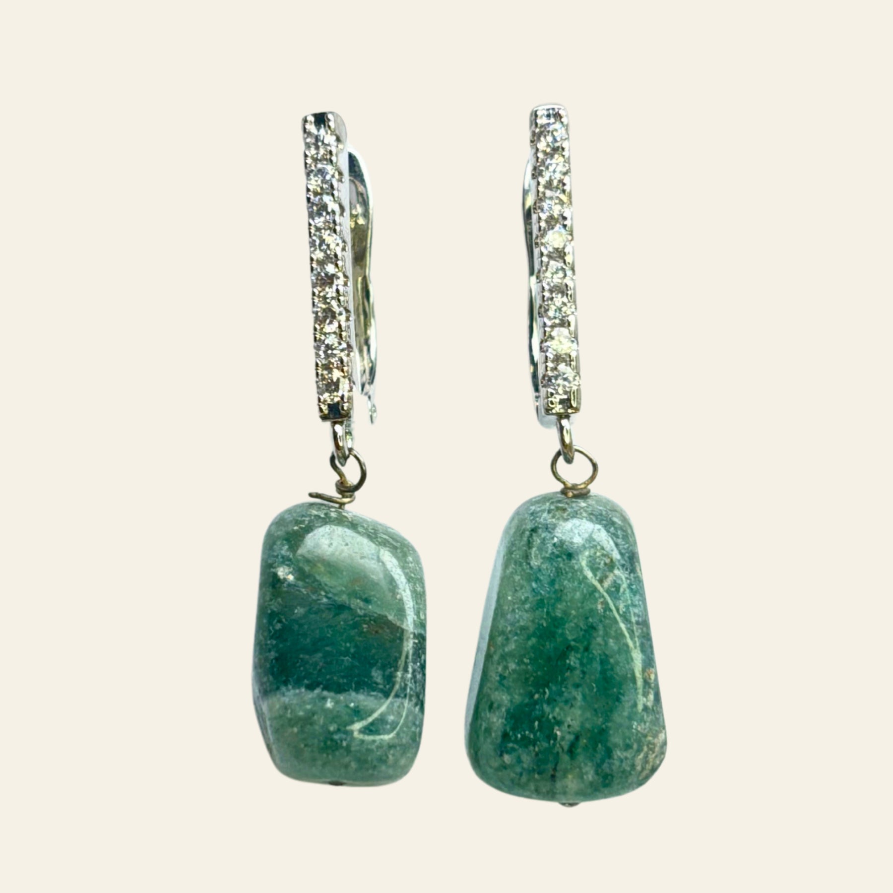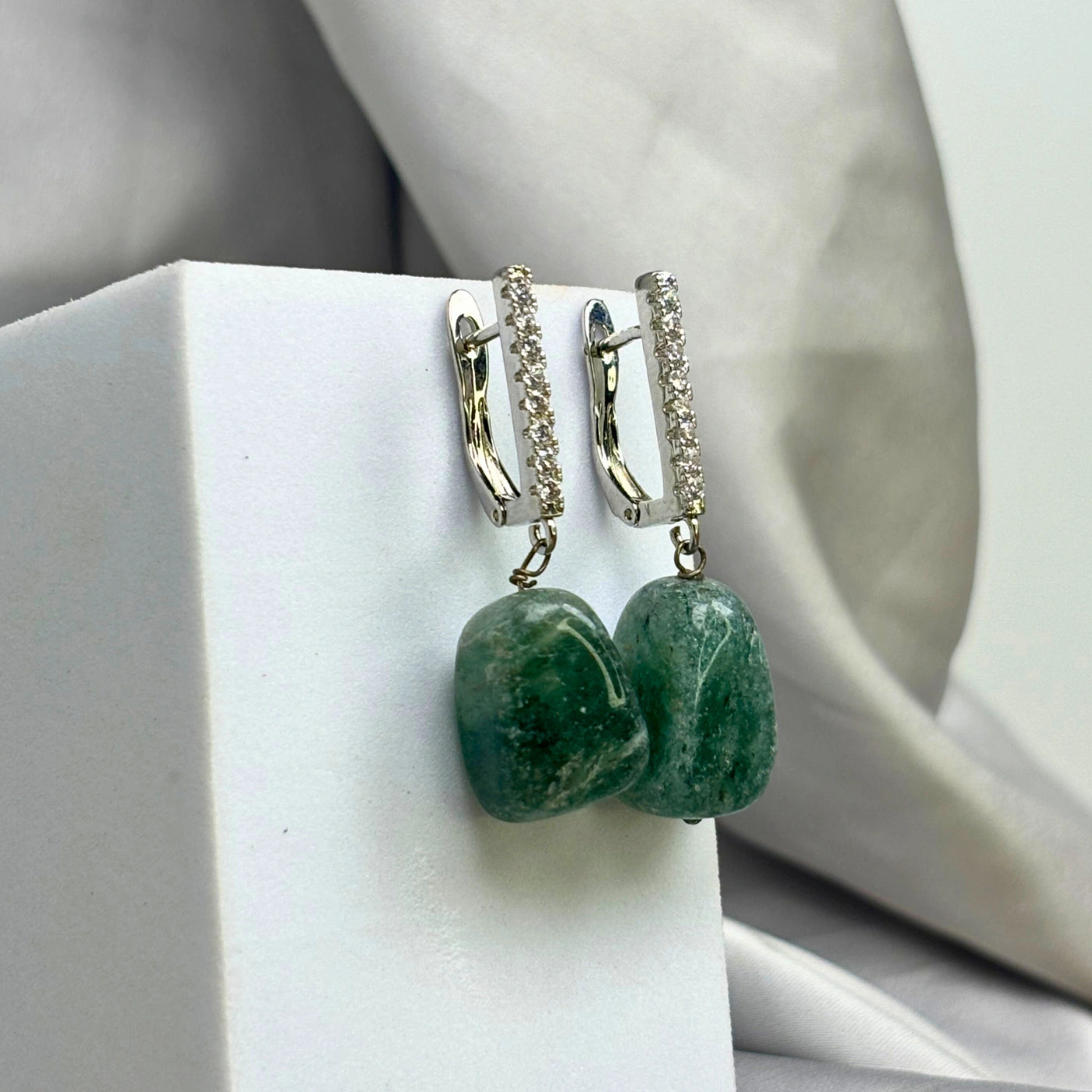 Rose Muse glows with the soft, nurturing energy of Strawberry Quartz — a stone of love, joy, and emotional healing. Known to open the heart chakra, it encourages self-love, compassion, and positive energy. The natural green hue adds a tender vibrancy that complements every skin tone, bringing warmth and serenity to your everyday style. Handcrafted with a minimalist touch, these studs are a gentle reminder to radiate kindness and confidence.