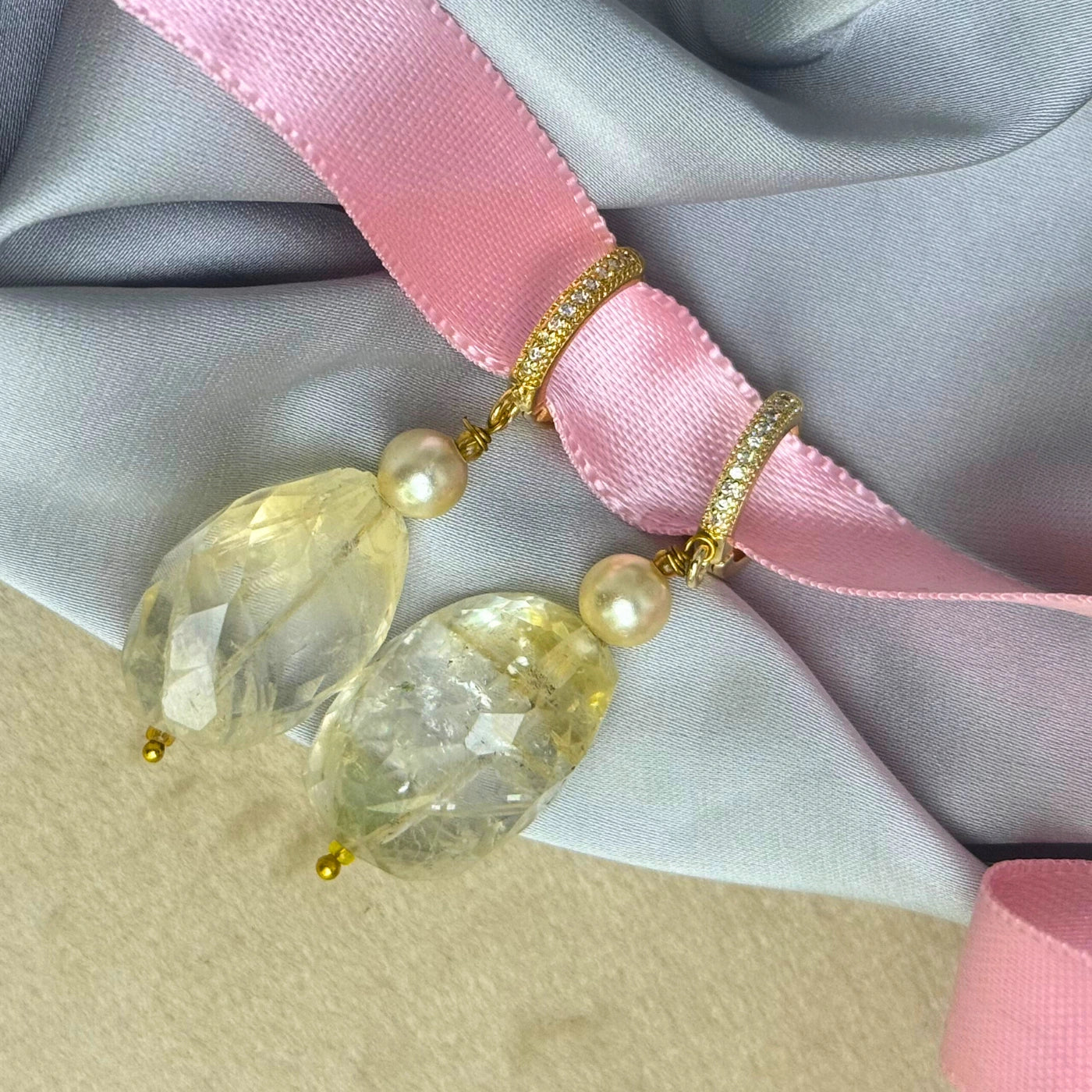 ✨ Natural citrine & white pearls