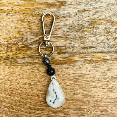 The ‘Spice’ keychain is made of the finest Jasper and Amazonite stones. The clip on strong and can be attached to anything and made into a keychain.