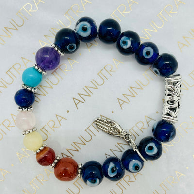 The ‘Enchanted’ bracelet is made of the finest 7 Chakra and Evil Eye stones.