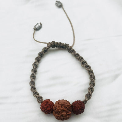 The “Rudra” braided macrame bracelet is made with authentic 5 mukhi Indonesian Rudraksh of supreme quality, with a contrasting thread and engraved German silver stoppers to give it a classy look. The threads are adjustable making the bracelet wearable by any one at any time.
