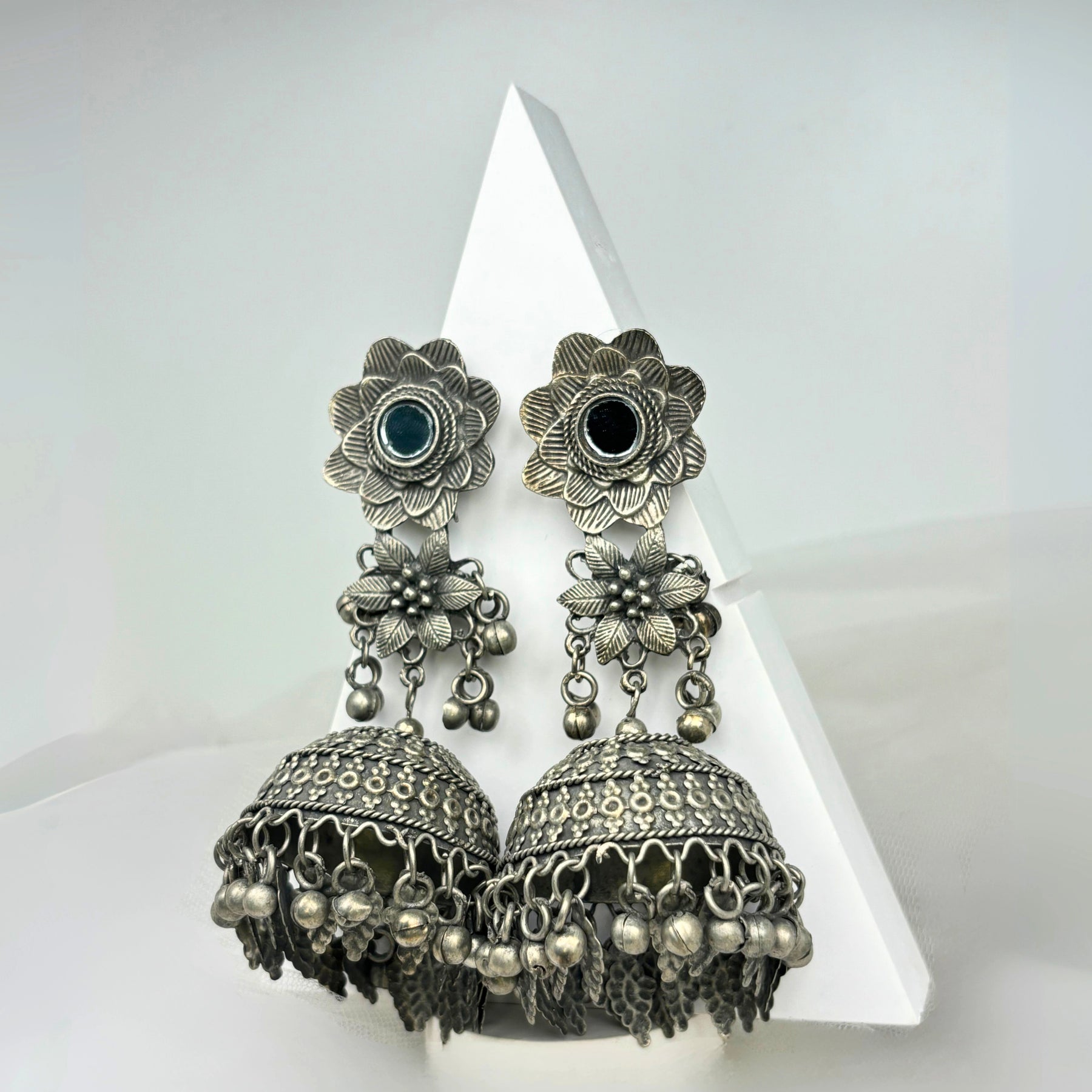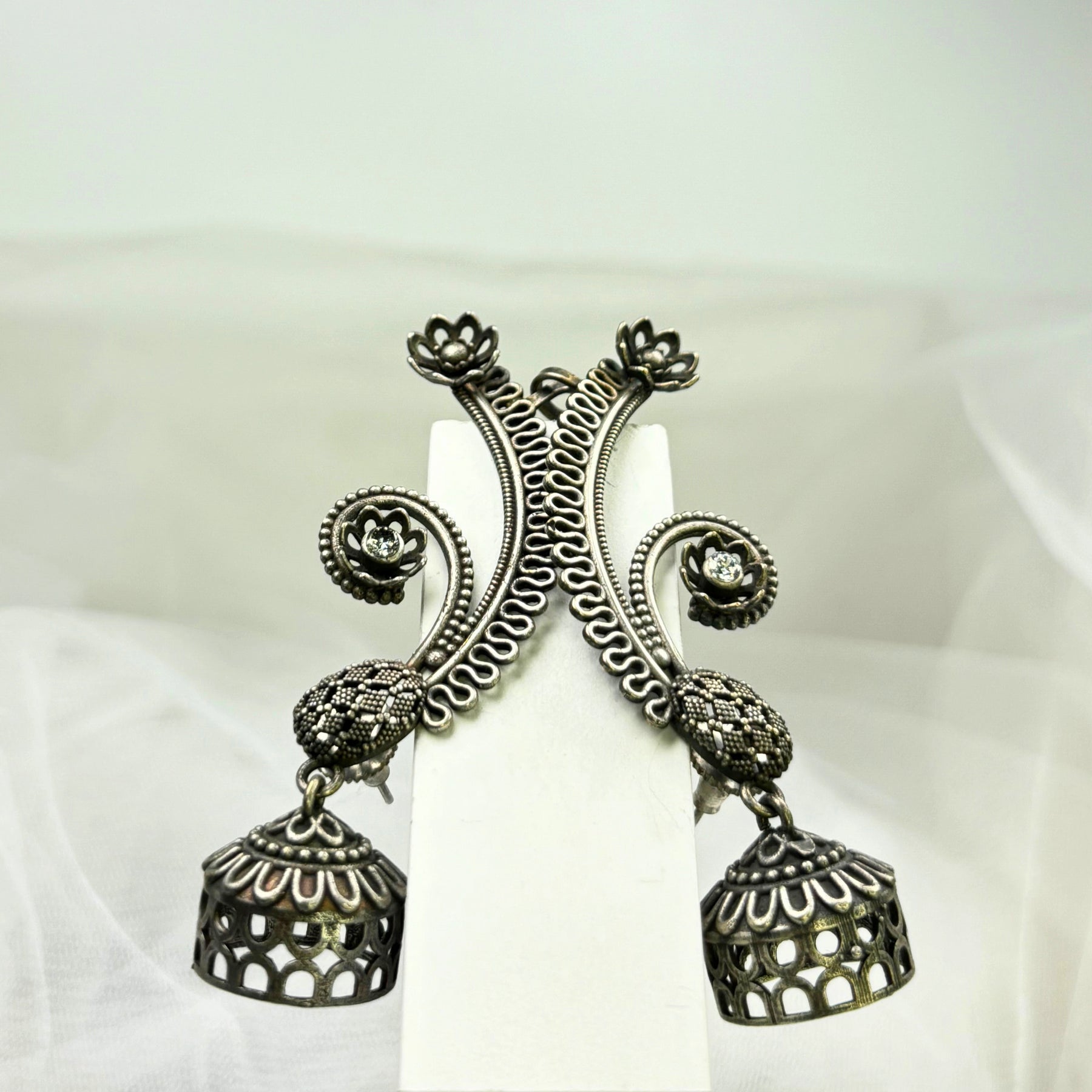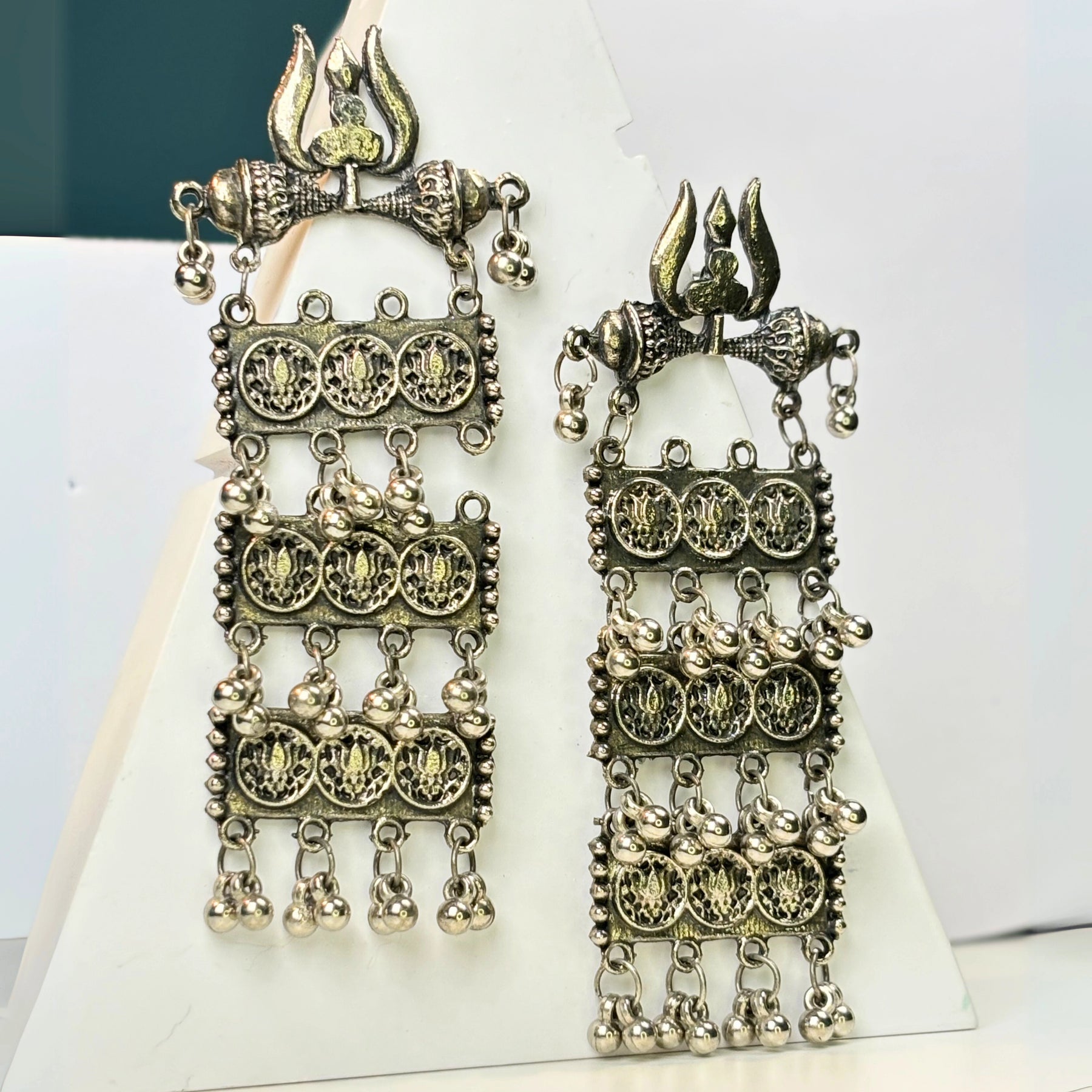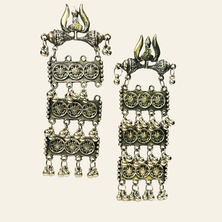 The ‘Aanya’ necklace is light to wear with an easy ‘s’ hook lock, it is 12 inches in length and weighs 62 grams. The solid silver chain with detailed engraving on the pendant and hanging bells at the end gives the entire piece a classy look.