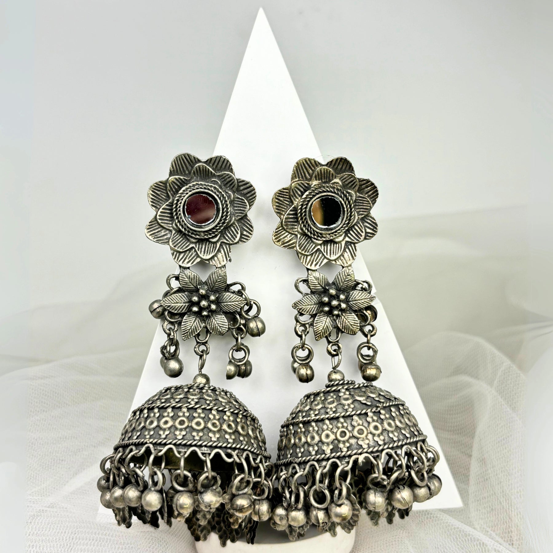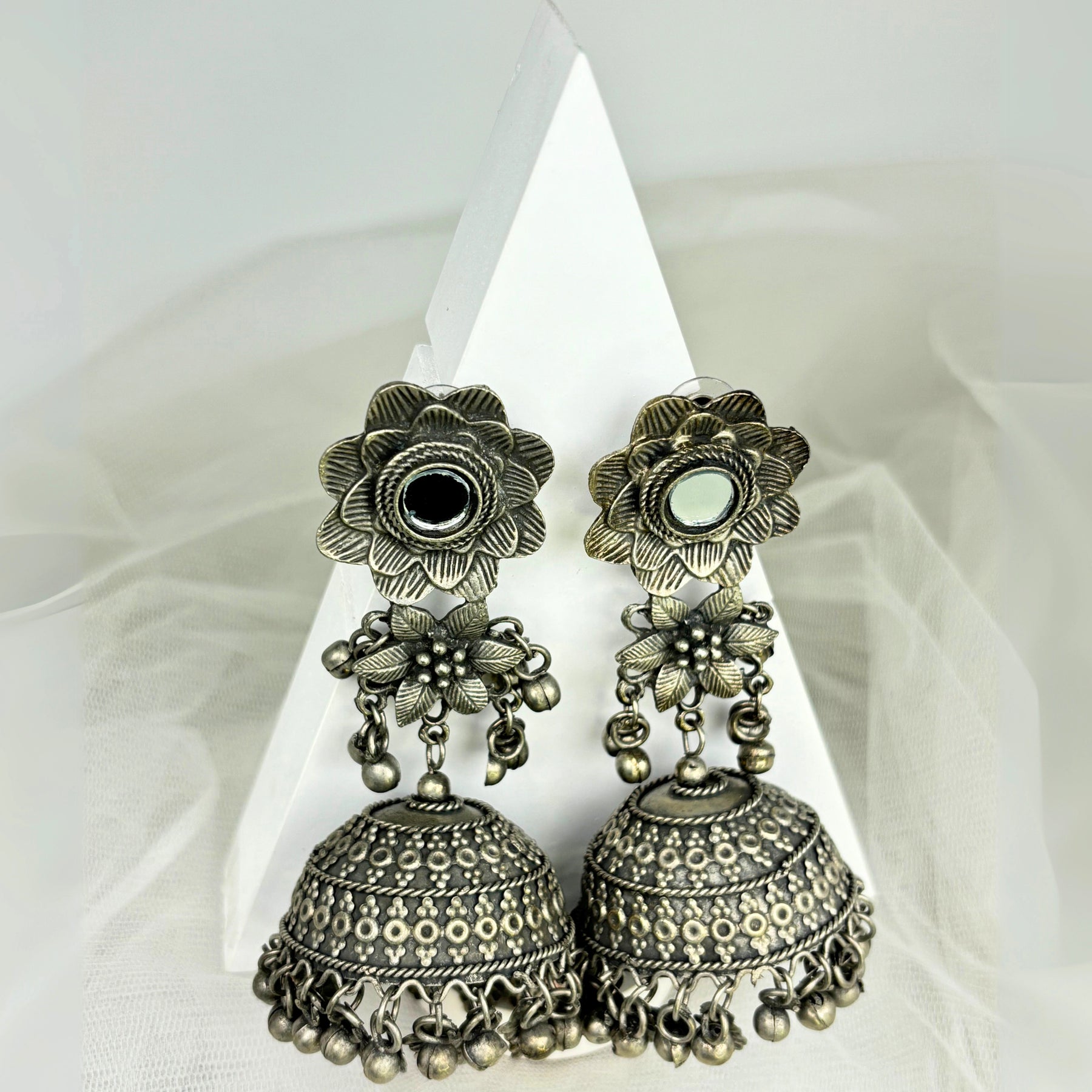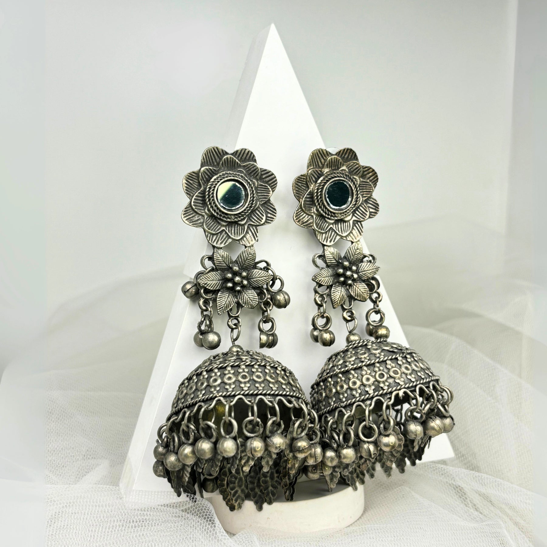 The ‘Aanya’ necklace is light to wear with an easy ‘s’ hook lock, it is 12 inches in length and weighs 62 grams. The solid silver chain with detailed engraving on the pendant and hanging bells at the end gives the entire piece a classy look.