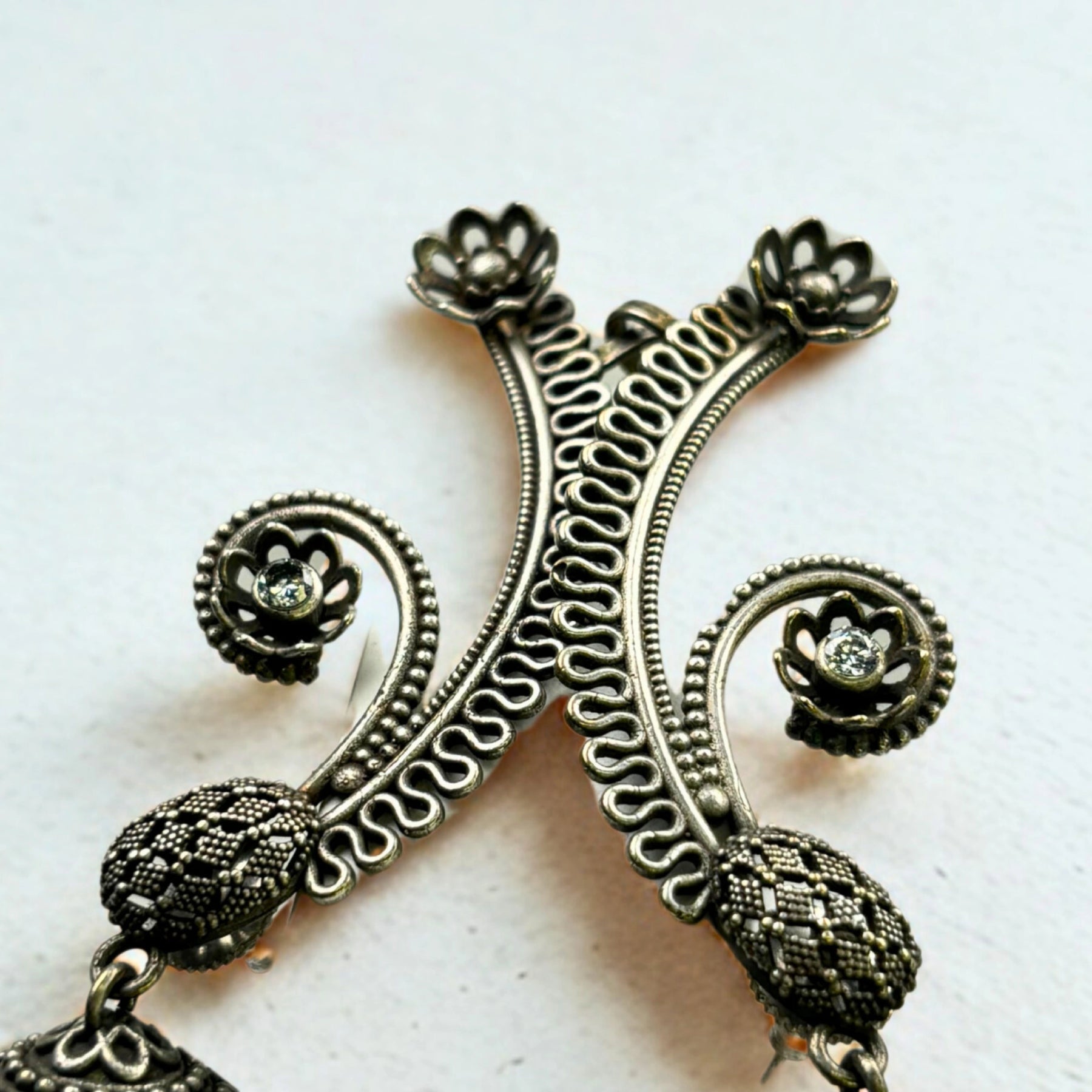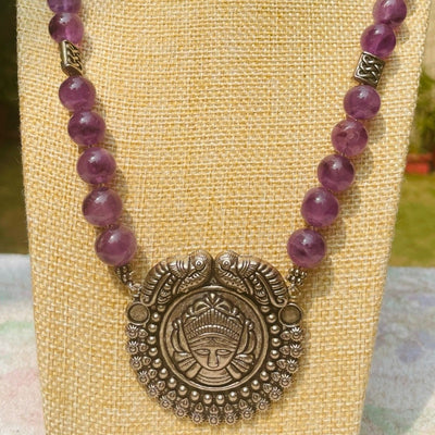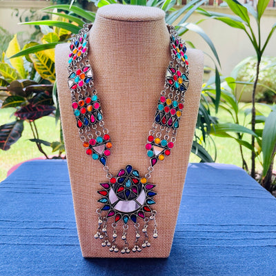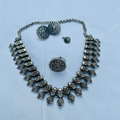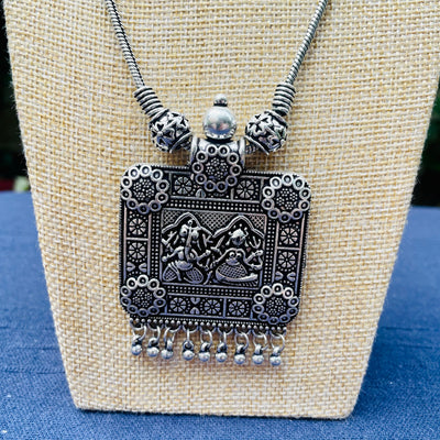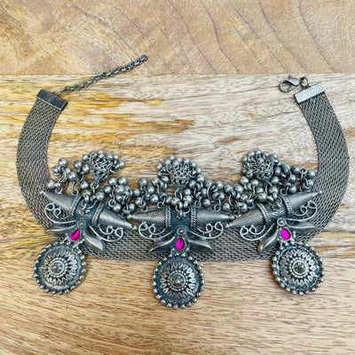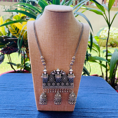 Adorn yourself with our exquisite hand crafted German silver Necklace, with an antique finish. It is lightweight and perfect for daily wear with Indian or Western outfits.