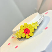 A necklace full of blossoms! The Rainbow Daisy Necklace features transparent acrylic flower-shaped beads in vibrant rainbow colors — a mini wearable garden for your little flower lover.