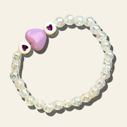 Charming and full of affection, the Pink Hugs Bracelet is made with shiny pearl-like acrylic beads and two blush pink acrylic heart charms. With tiny pink hearts printed on the acrylic beads, it's equal parts cute and adorable.