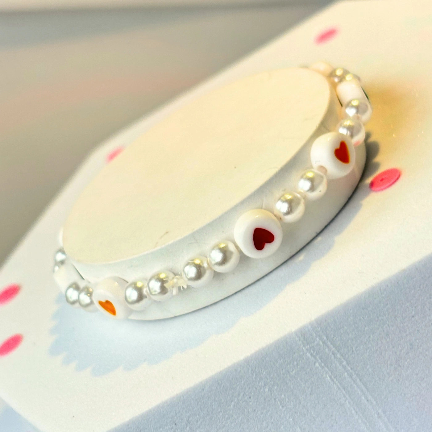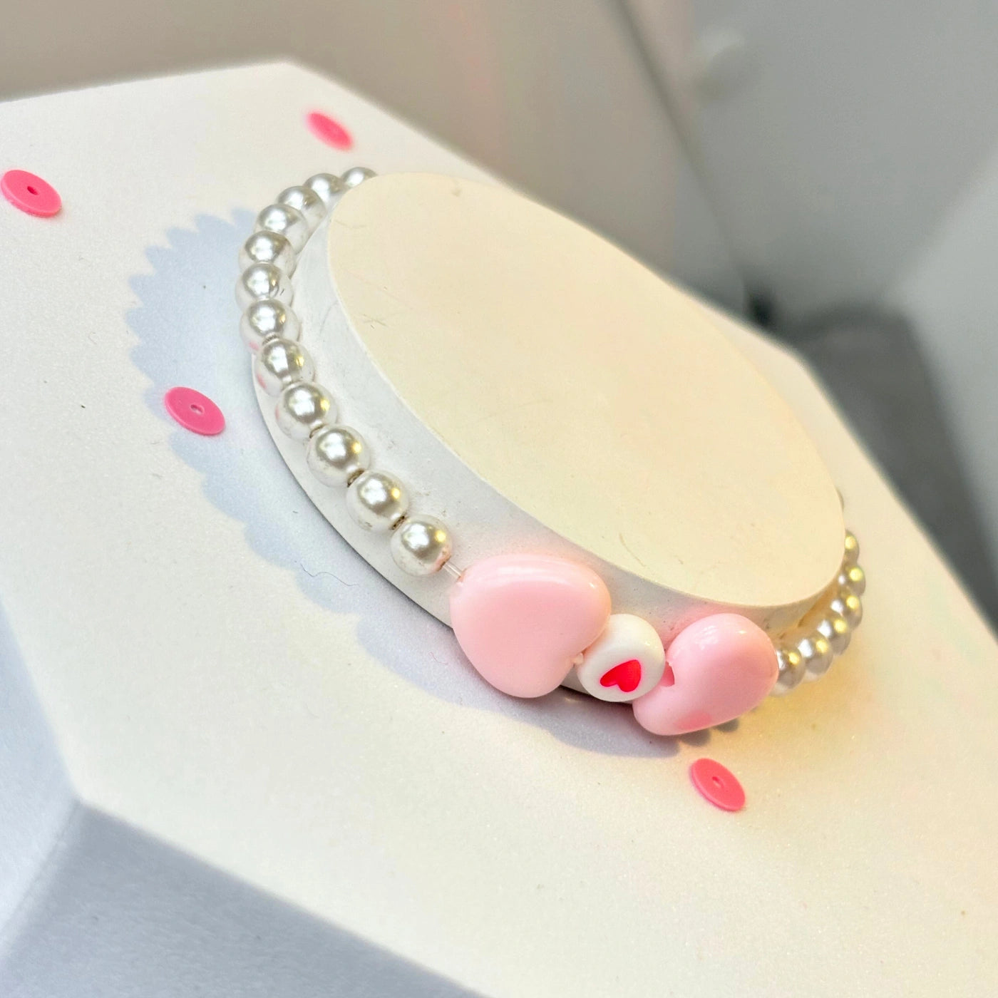 Made with high-quality acrylic hearts and glossy pearl-style beads that are as durable as they are delightful.