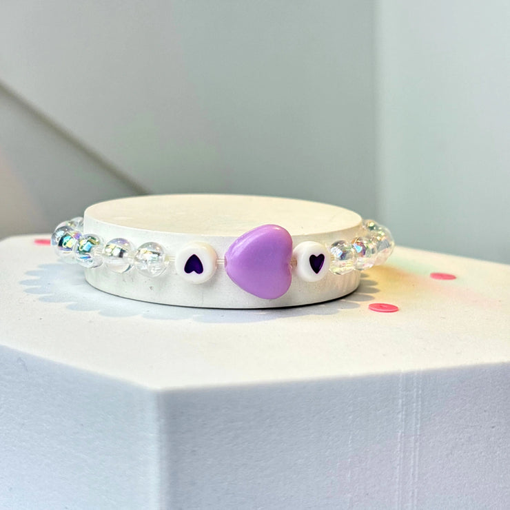 Lavender + love + bracelet + girl + jewellery + purple + lavender + heart + rainbow + plastic + elastic + hearts + child + kids + pretty + beads + + glossy + pearl + finish + lavender acrylic + heart + charm + annutra
