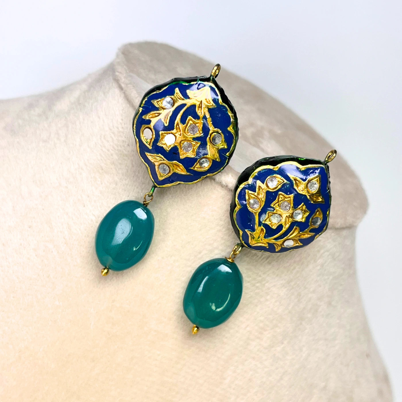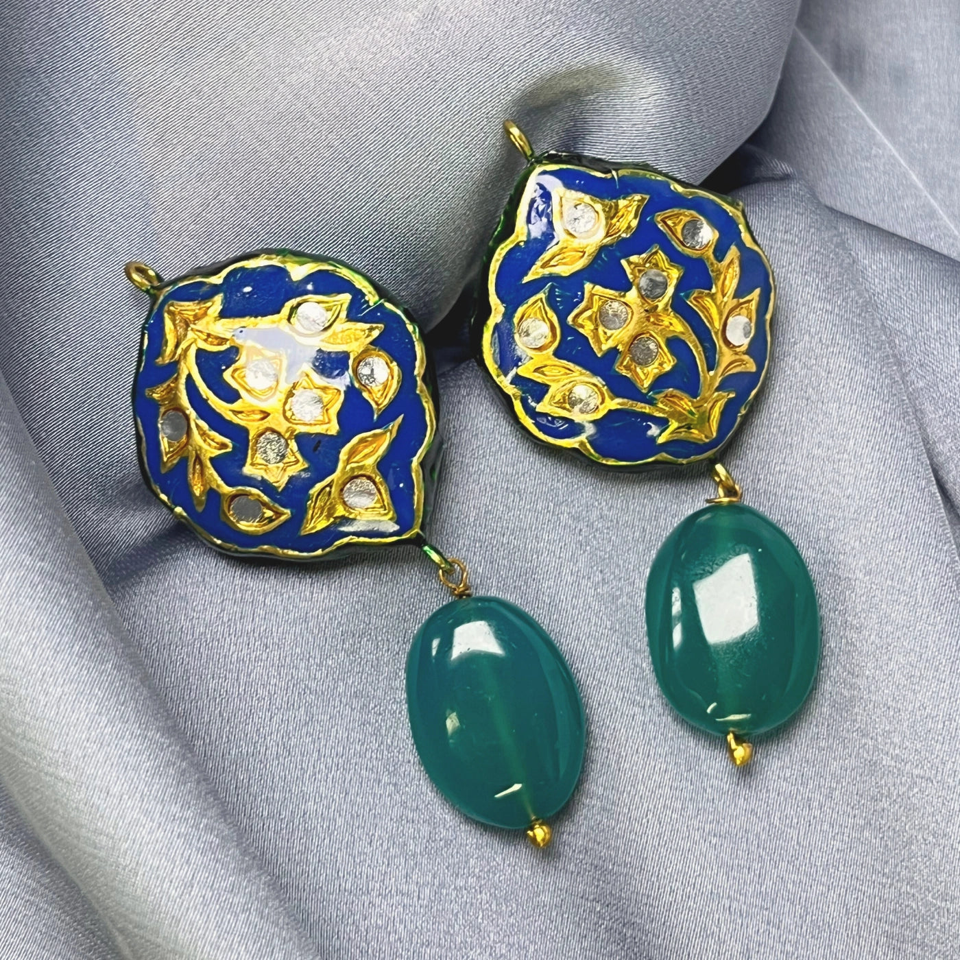 💎 Glass Polki stones and green onyx drops
