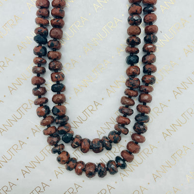 Introducing ‘Mahogany’, our truly unique hand crafted neckpiece made of the finest Mahogany Obsidian stones accompanied with gorgeous tiny black beads. Each stone has been cut in the shape of a diamond, giving the illusion of diamond crystals. The necklace weighs 65 grams and is 10.5 inches in length.