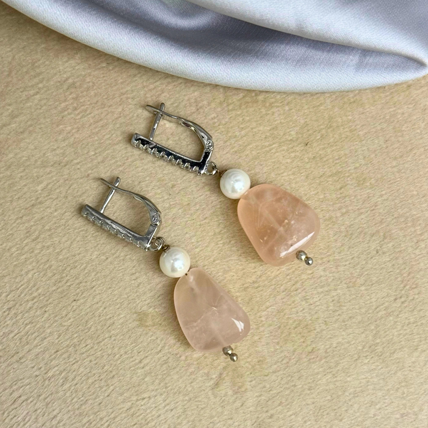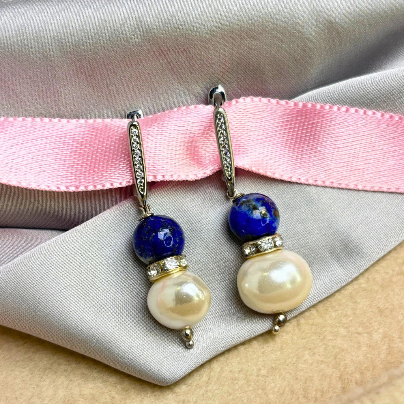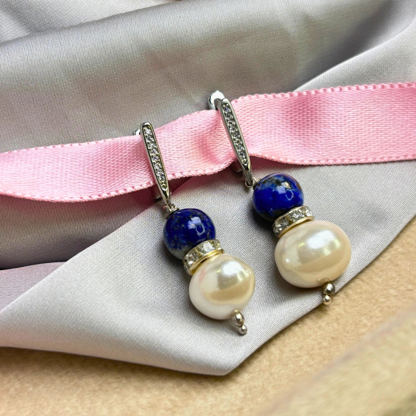 A whisper of the sea and sky, Azure Whisper merges tranquil blue agate with delicate freshwater pearls. Blue agate encourages calm communication and emotional balance, while pearls soften the aura with peace and grace. The silver detailing adds a quiet shimmer, making these earrings ideal for both mornings or gentle evening stroll.