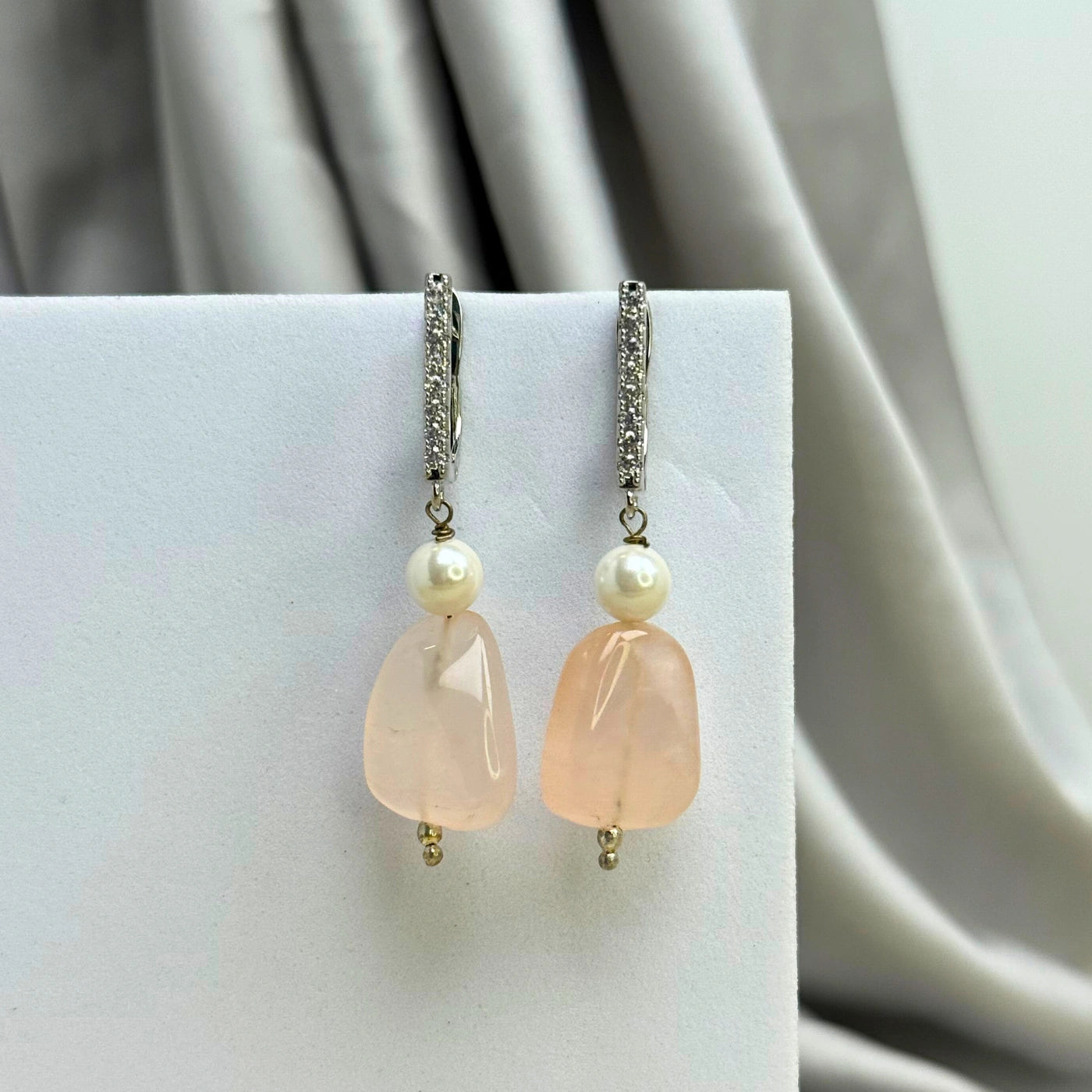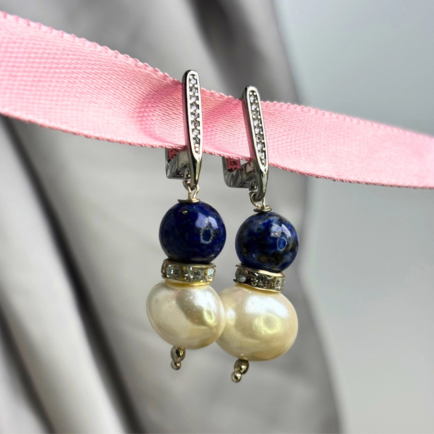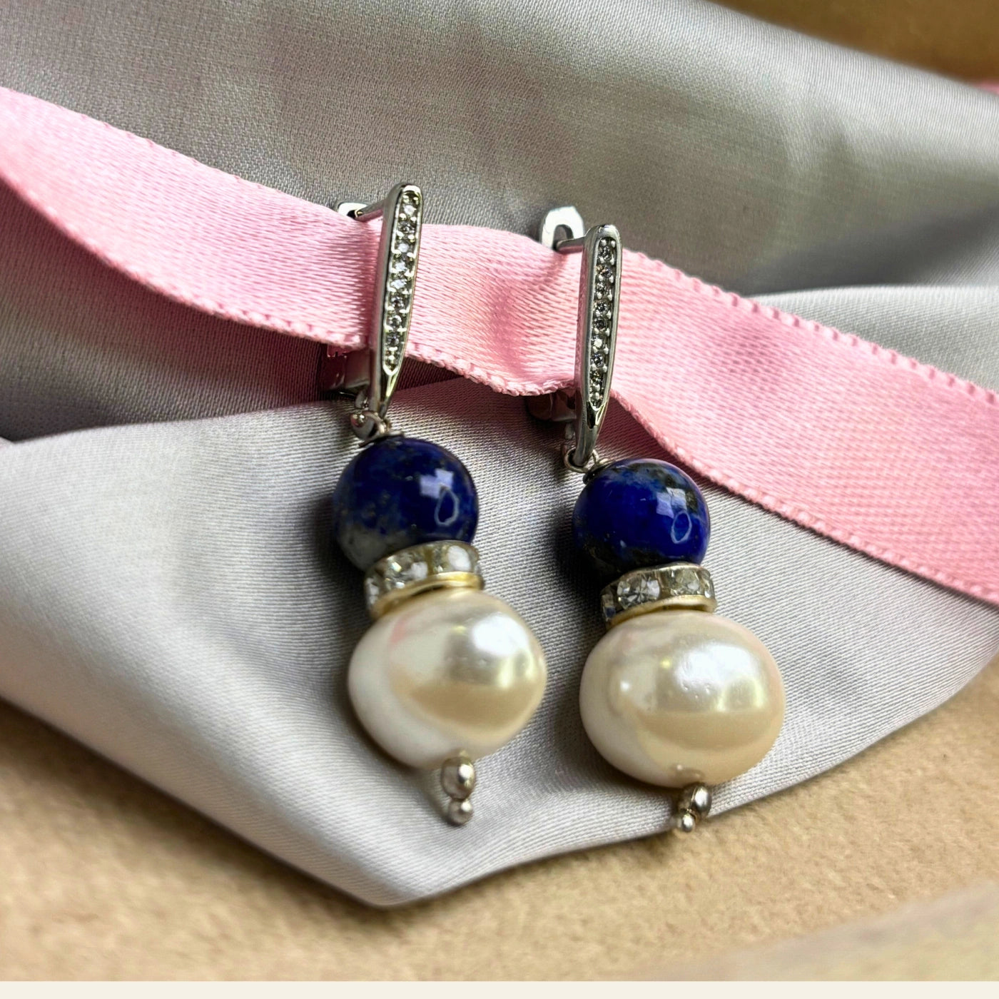 A whisper of the sea and sky, Azure Whisper merges tranquil blue agate with delicate freshwater pearls. Blue agate encourages calm communication and emotional balance, while pearls soften the aura with peace and grace. The silver detailing adds a quiet shimmer, making these earrings ideal for both mornings or gentle evening stroll.