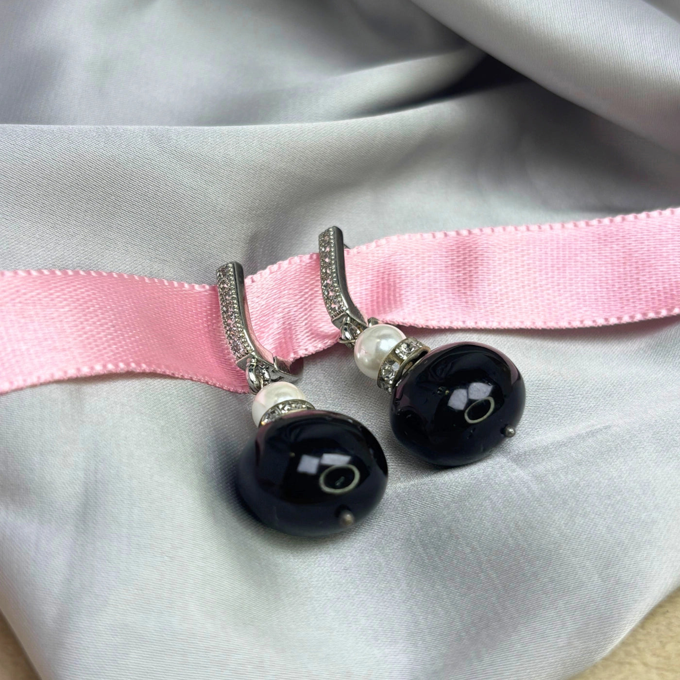 An Drawing inspiration from moonlight reflected on calm waters, Midnight Tides features rare black pearls paired with luminous white Keshi pearls. The black pearls bring grounding and protection, while Keshi pearls — known for their natural, free-form beauty — symbolize purity and new beginnings. The subtle shimmer and gentle drop design create a timeless silhouette, reflecting understated elegance in every curve.