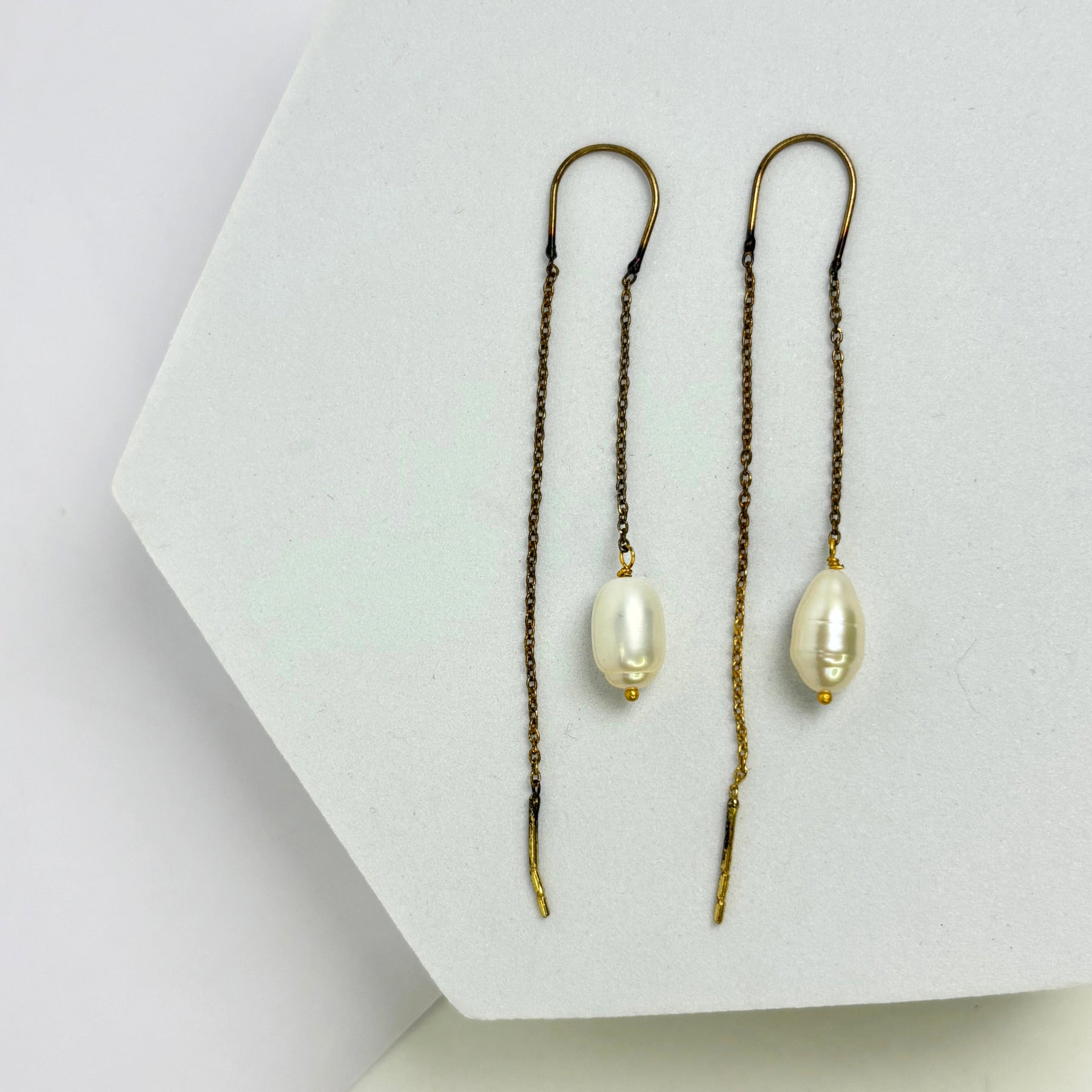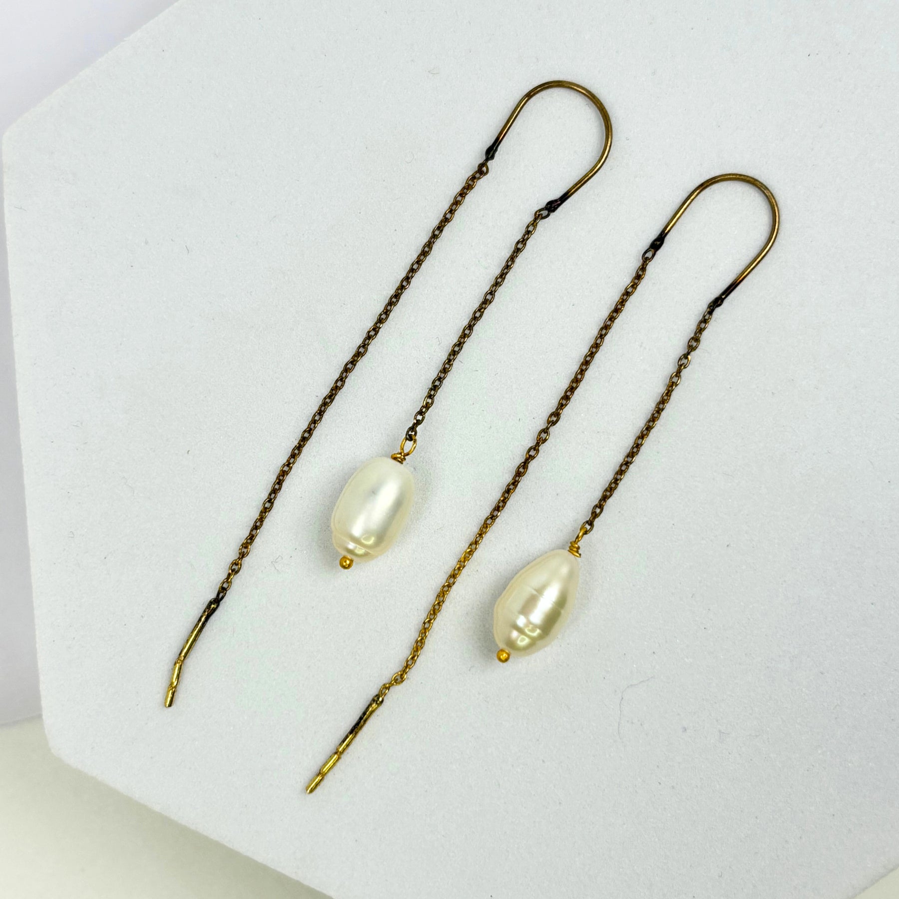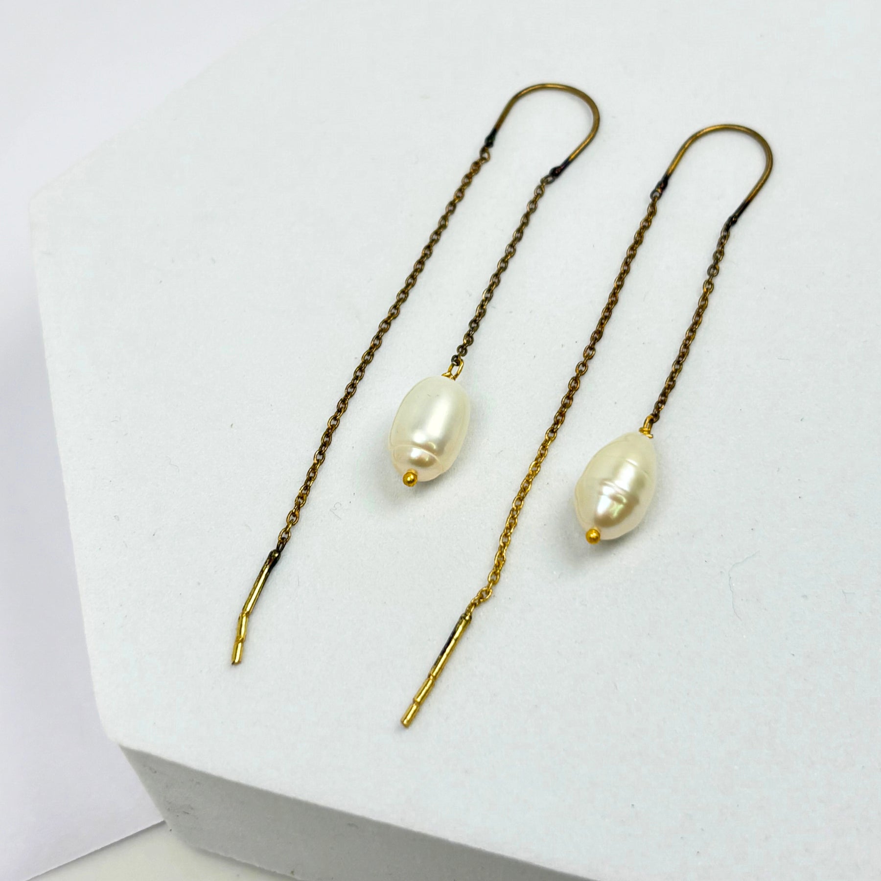 Our pearls are carefully selected to ensure that they have a flawless surface and a radiant glow. The brass settings provide the perfect contrast to the pearls, highlighting their beauty and elegance.