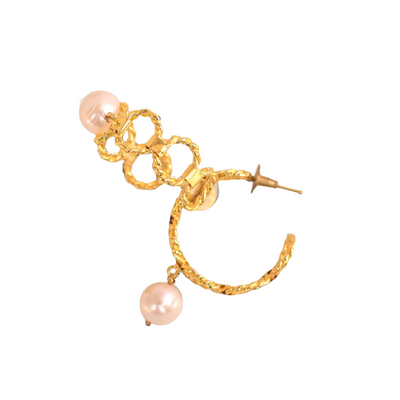 Delicate yet timeless, Golden Mist captures the quiet elegance of dawn. The white pearls, symbolizing purity and wisdom, radiate soft luminosity reminiscent of morning sunlight on calm waters. Known to balance emotions and enhance inner peace, pearls have long been treasured for their serene aura. Handcrafted with minimal gold detailing, these earrings are anti tarnish.