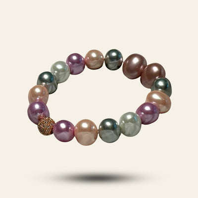 Step into the enchanting glow of twilight with this stunning multicolour shell pearl bracelet. With a dreamy blend of deep plum, soft champagne, and iridescent grey, it captures the quiet magic of dusk. Designed with anti-tarnish metal for lasting brilliance, it’s a piece that feels as timeless as the evening sky. The cubic zirconia studded AD ball adds elegance to this bracelcet.