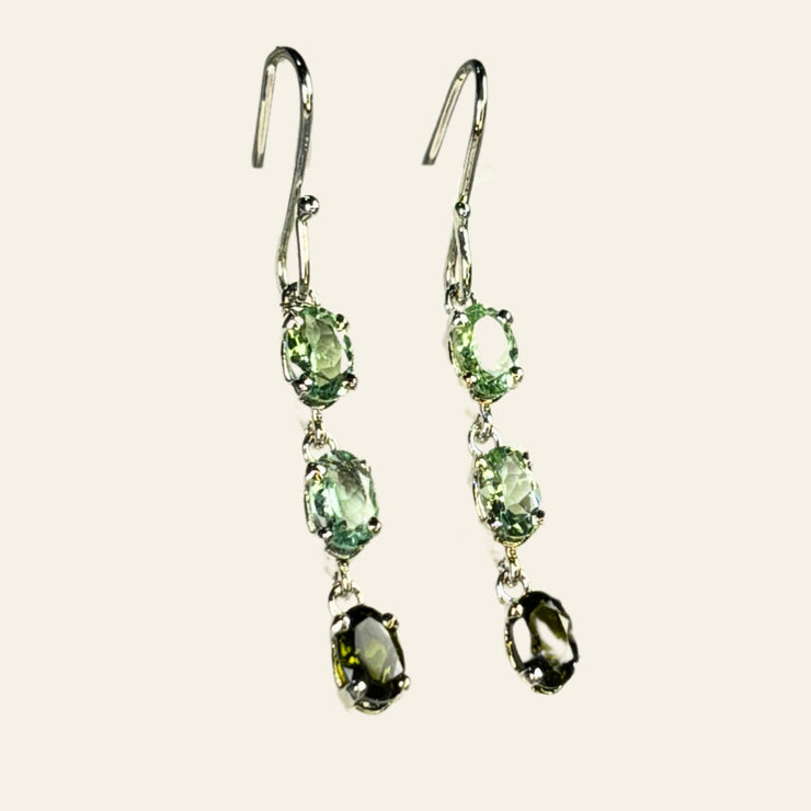 Elevate your everyday look with our minimalist Fern earrings from the 925 Sterling Silver collection. Designed with faceted rainforest green tourmaline stones, these chandelier earrings exude natural elegance.